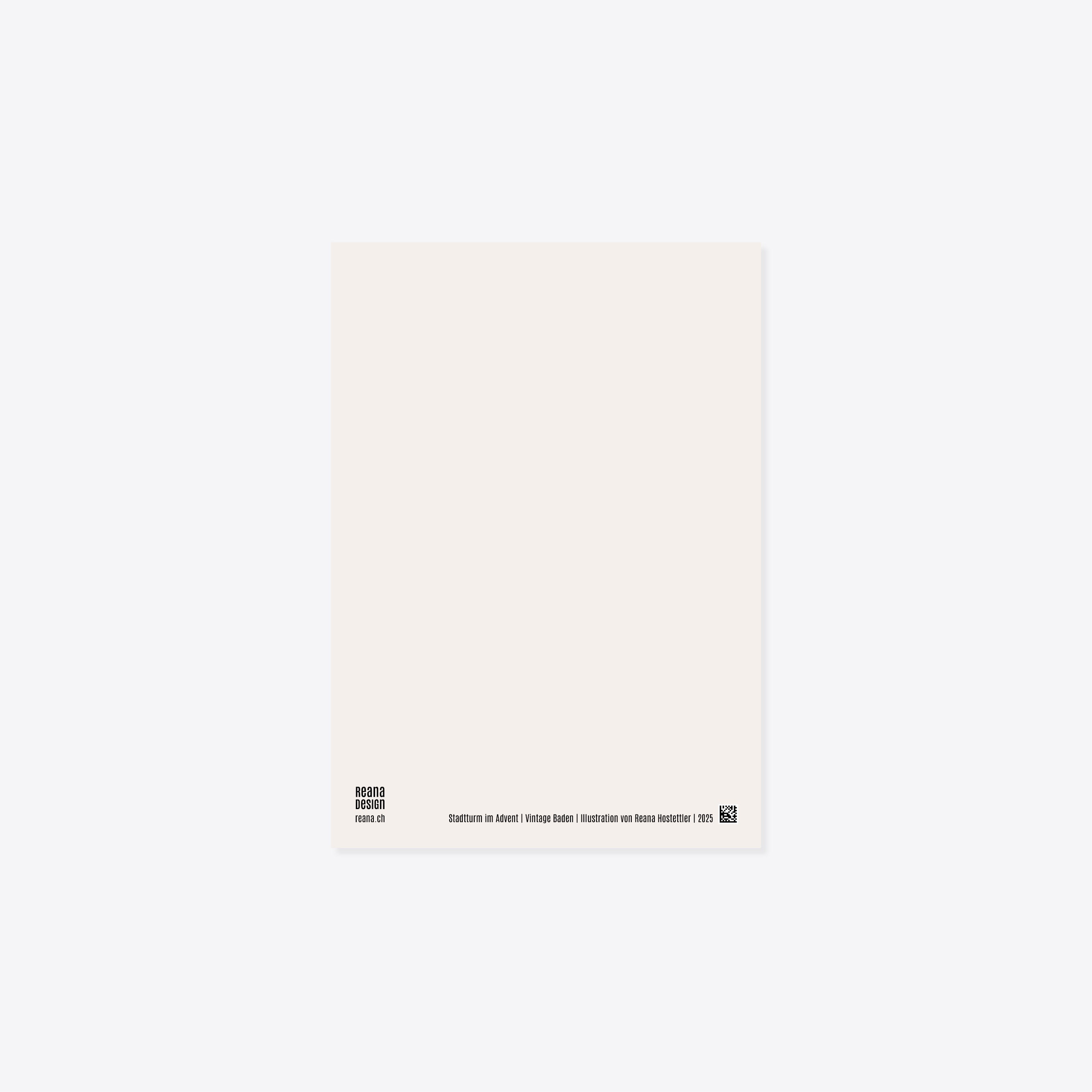 Reana Hostettler: «Der Stadtturm im Advent hat für mich eine ganz besondere Magie – es ist, als würde Baden in dieser Zeit kurz stillstehen und in goldenem Licht erstrahlen. Genau dieses Gefühl wollte ich mit meiner Illustration einfangen.»