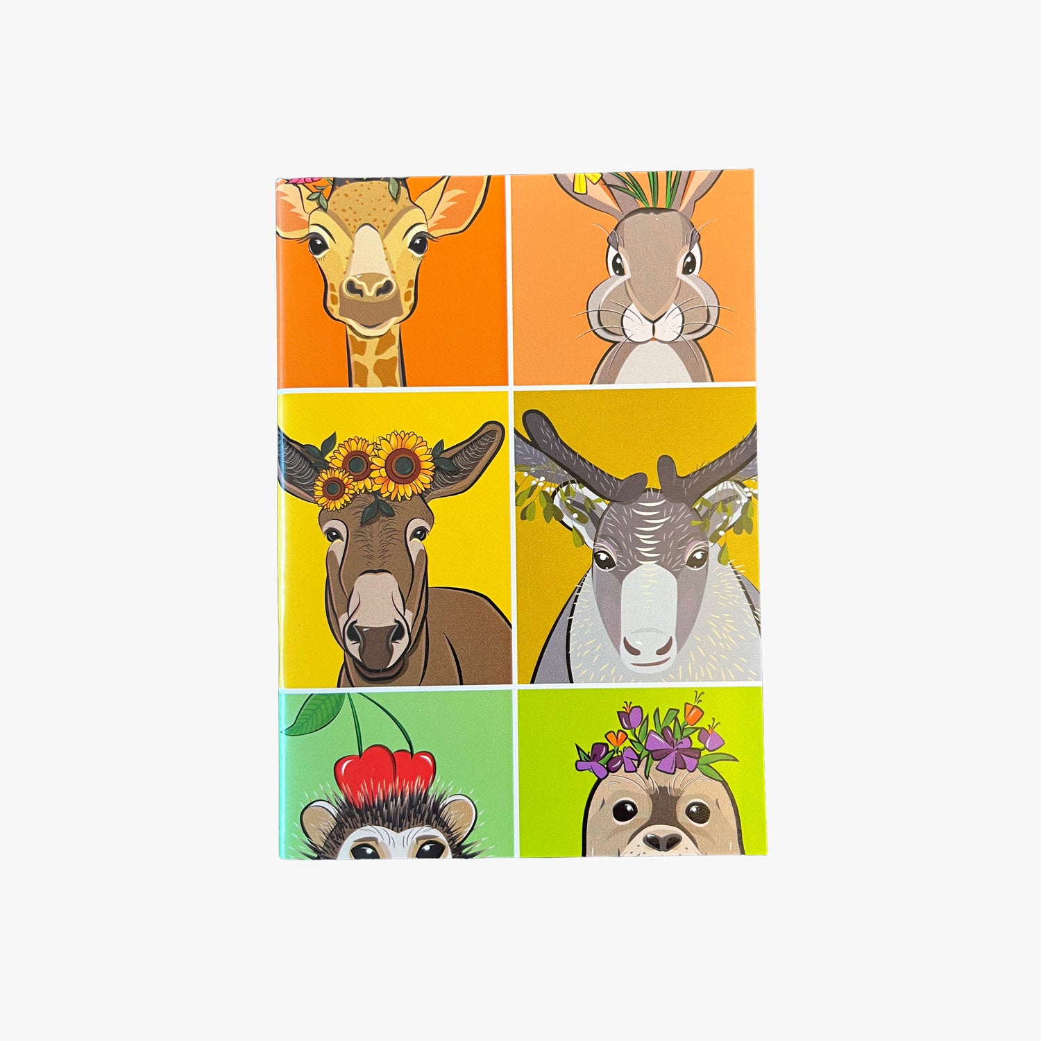 Das Notizheft Blumentiere bringt Farbe, Leben und Freude in deinen Alltag. Das Cover zeigt unterschiedliche Tiere, kunstvoll illustriert mit Blumen in leuchtenden Farben – jedes Motiv ein kleines Kunstwerk von Reana Hostettler aus reana.ch. Kein Heft gleicht dem anderen, denn jedes wurde aus einem anderen Abschnitt des Geschenkpapiers gefertigt. So kann auf deinem Cover ein Igel, ein Waschbär, ein Hase oder ein anderes Blumentier zu sehen sein – ganz zufällig und immer überraschend schön.
