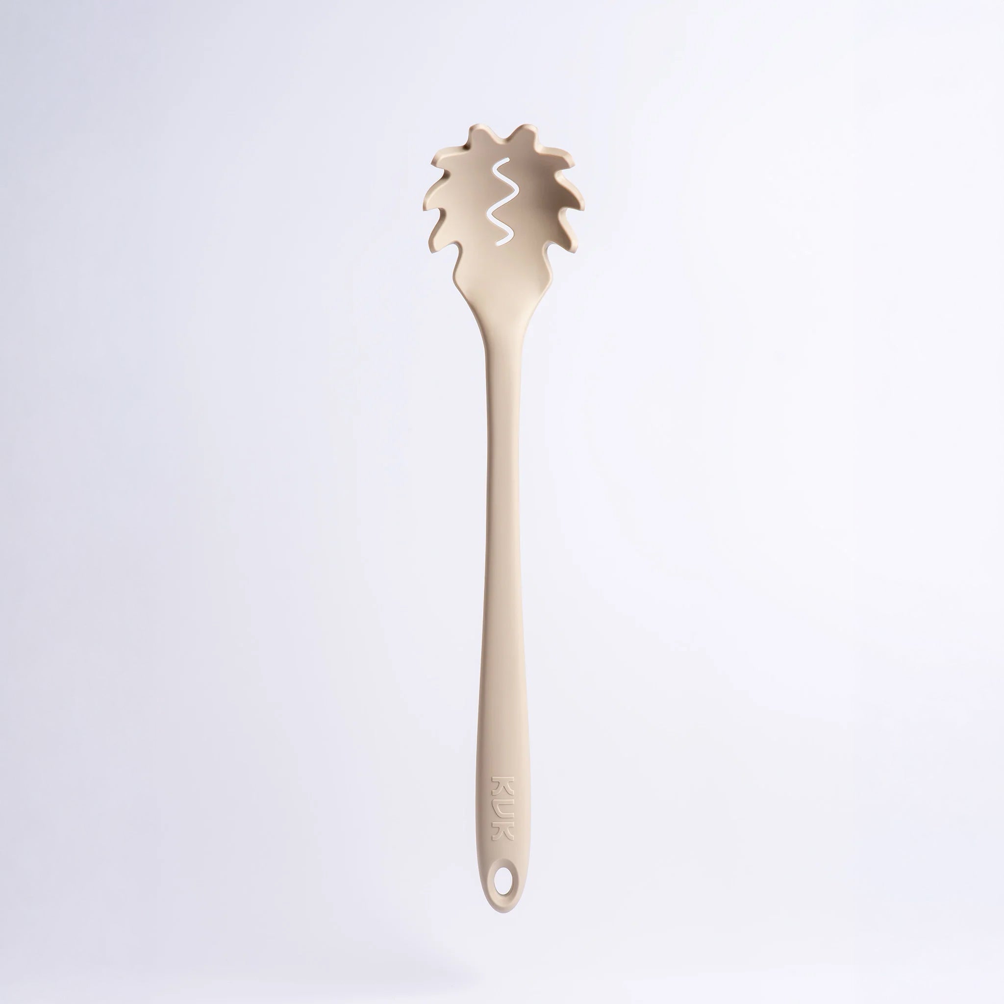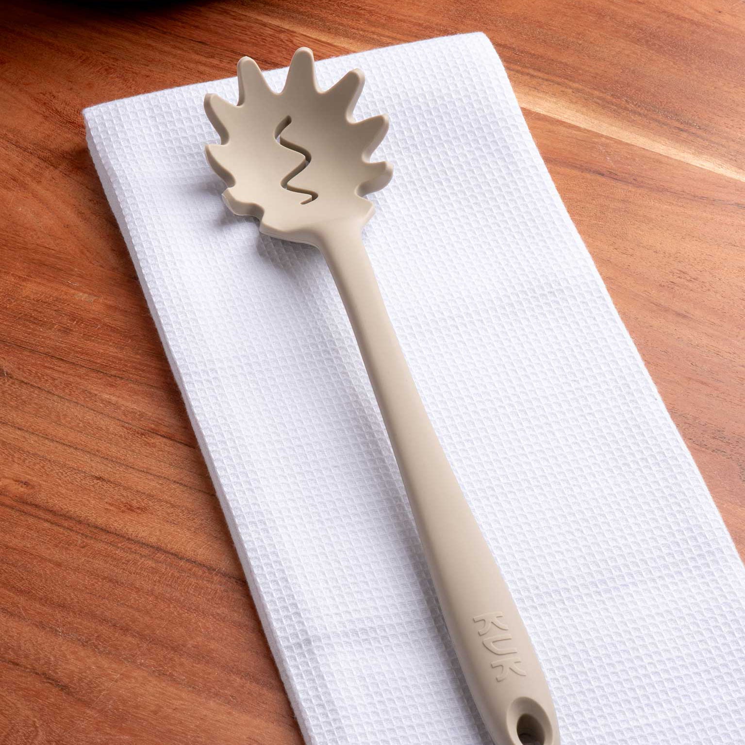 Der Kopf aus hochwertigem Platinsilikon ist flexibel und gleichzeitig stabil genug, um auch grössere Portionen Pasta aufzunehmen. Dabei bleibt er sanft zu beschichteten Töpfen und Pfannen und verhindert Kratzer im Kochgeschirr.