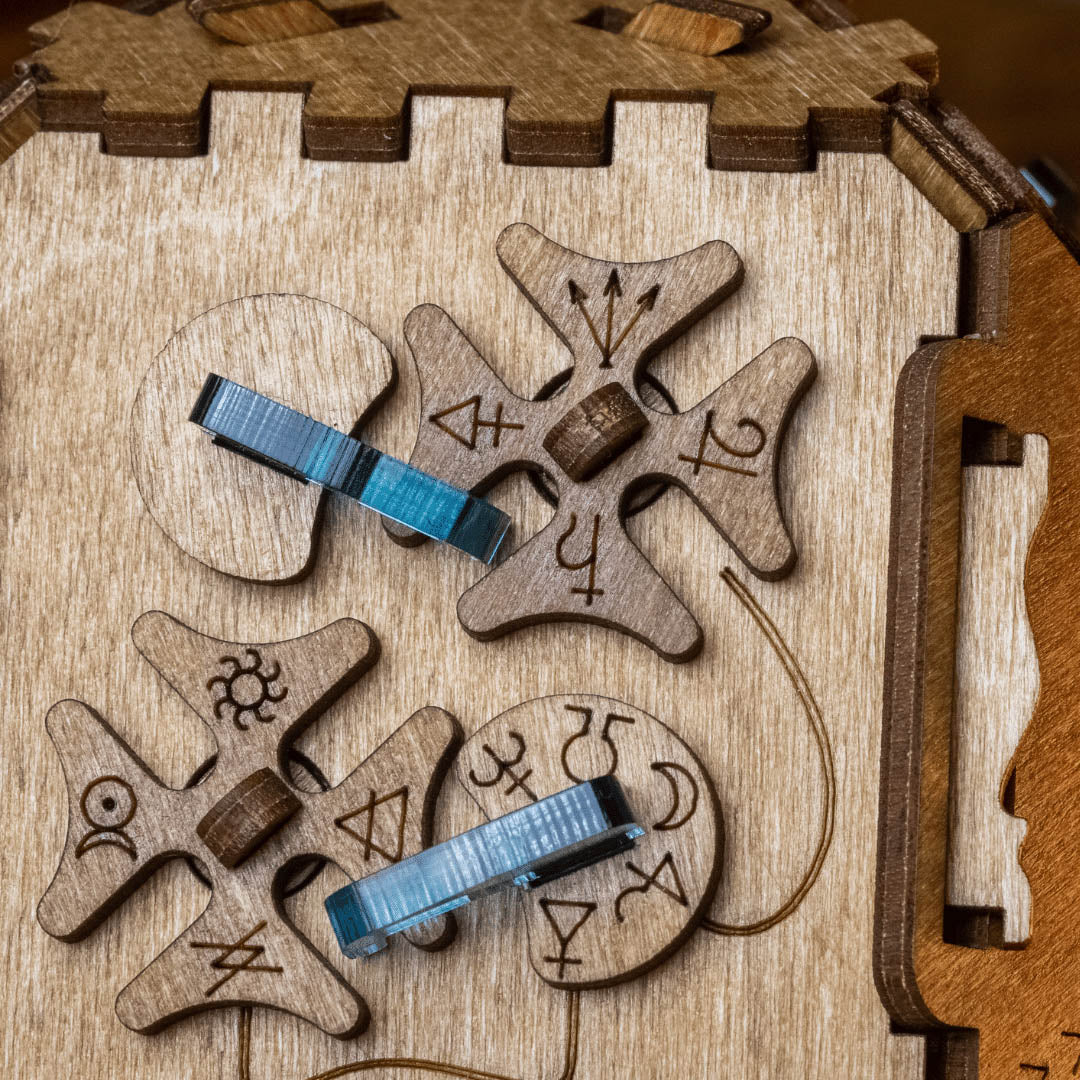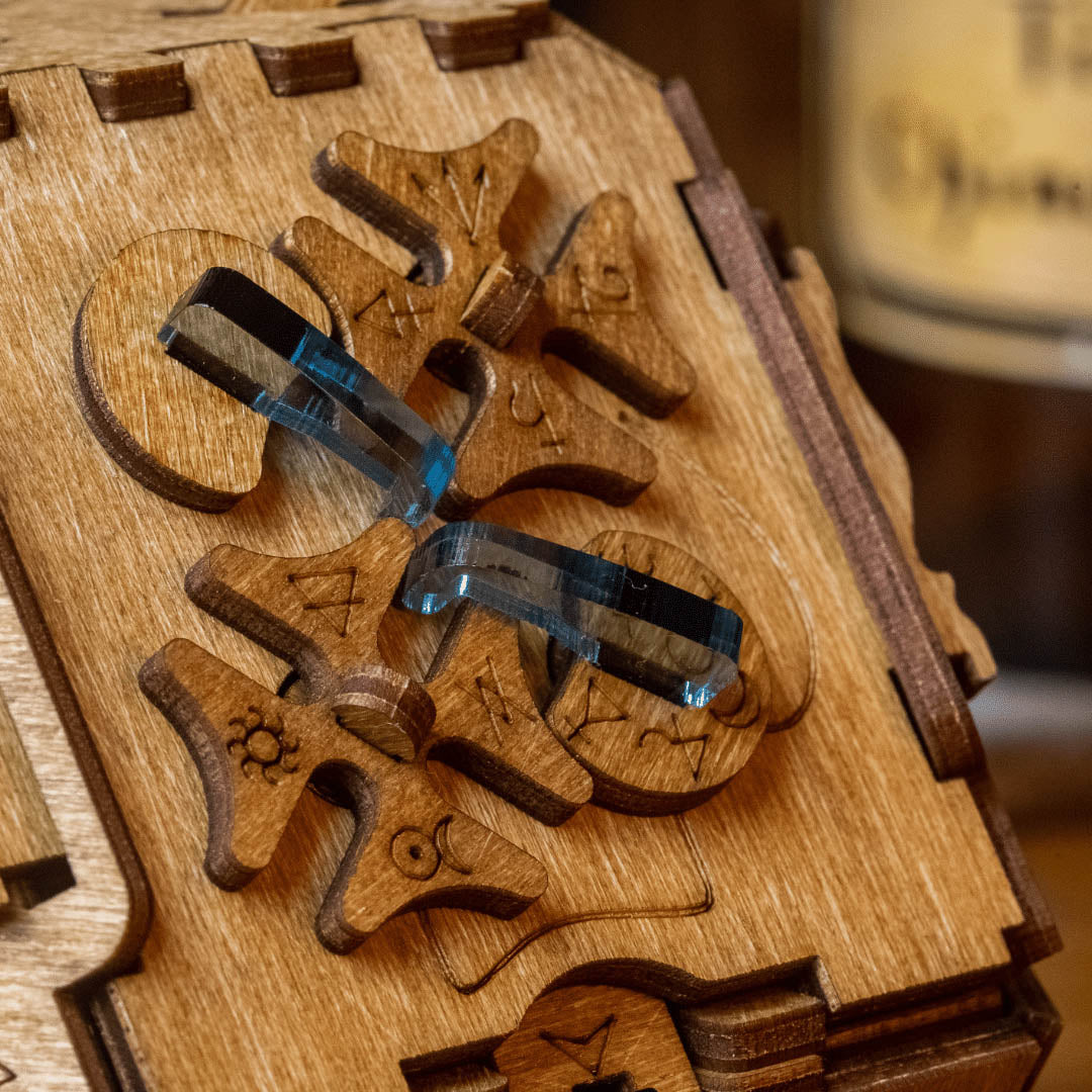 Der französische Alchemist Nicolas Flamel soll im 14. Jahrhundert den Stein der Weisen erschaffen haben – das Elixier des Lebens. Vor seinem Tod versteckte er den Stein angeblich in einer Holztruhe, um ihn vor falschen Händen zu bewahren. Diese Box ist eine Hommage an jene Legende. Wirst du derjenige sein, der das Geheimnis lüftet?