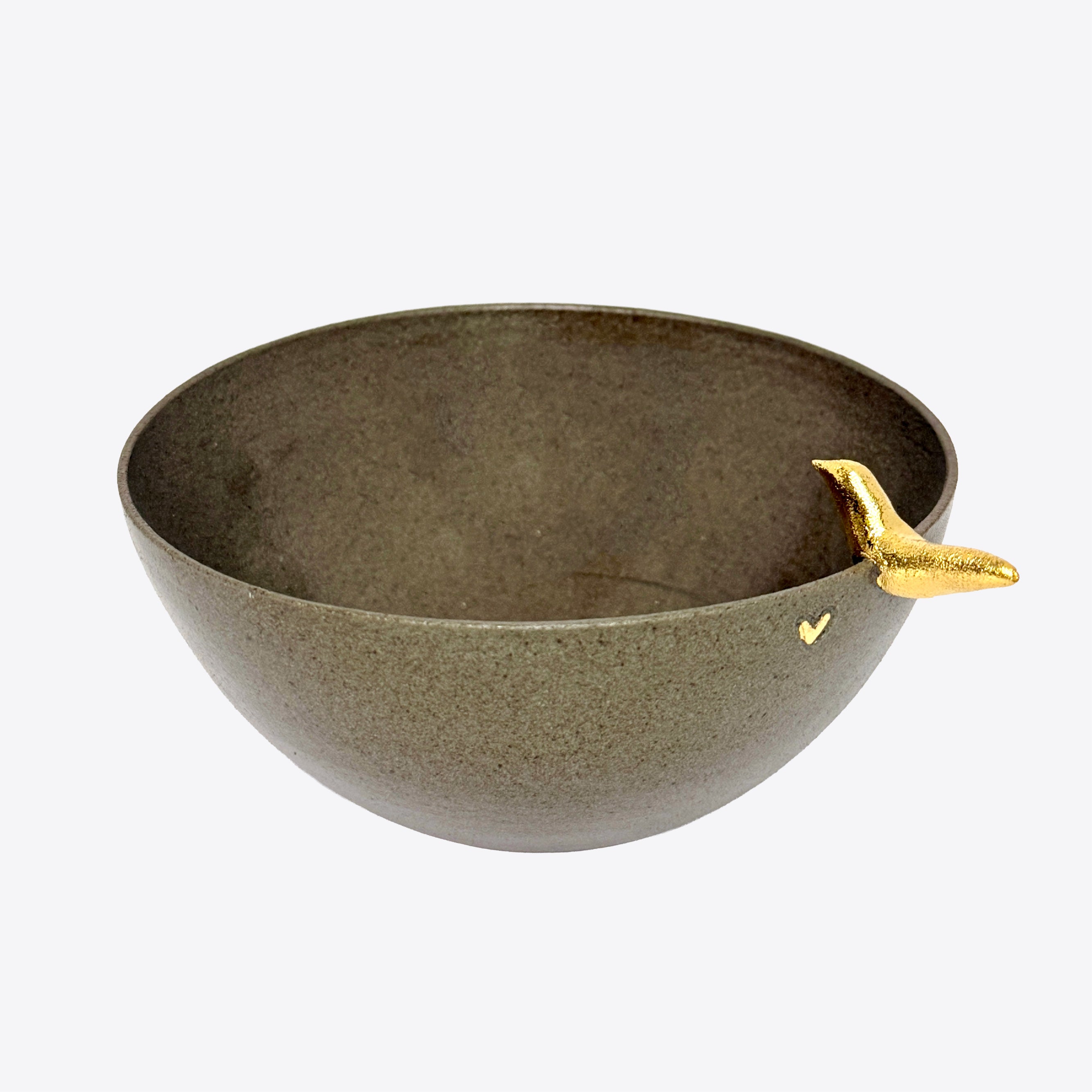 Die handgefertigten Schalen von eifach Luzia sind echte Unikate – jede ein liebevoll gestaltetes Stück Schweizer Handwerkskunst. Der kleine goldige Vogel auf dem Rand bringt Leichtigkeit und ein Augenzwinkern auf deinen Tisch. In Kombination mit dem zarten Herz-Detail entsteht ein einzigartiger Mix aus Design, Emotion und Alltagspoesie.