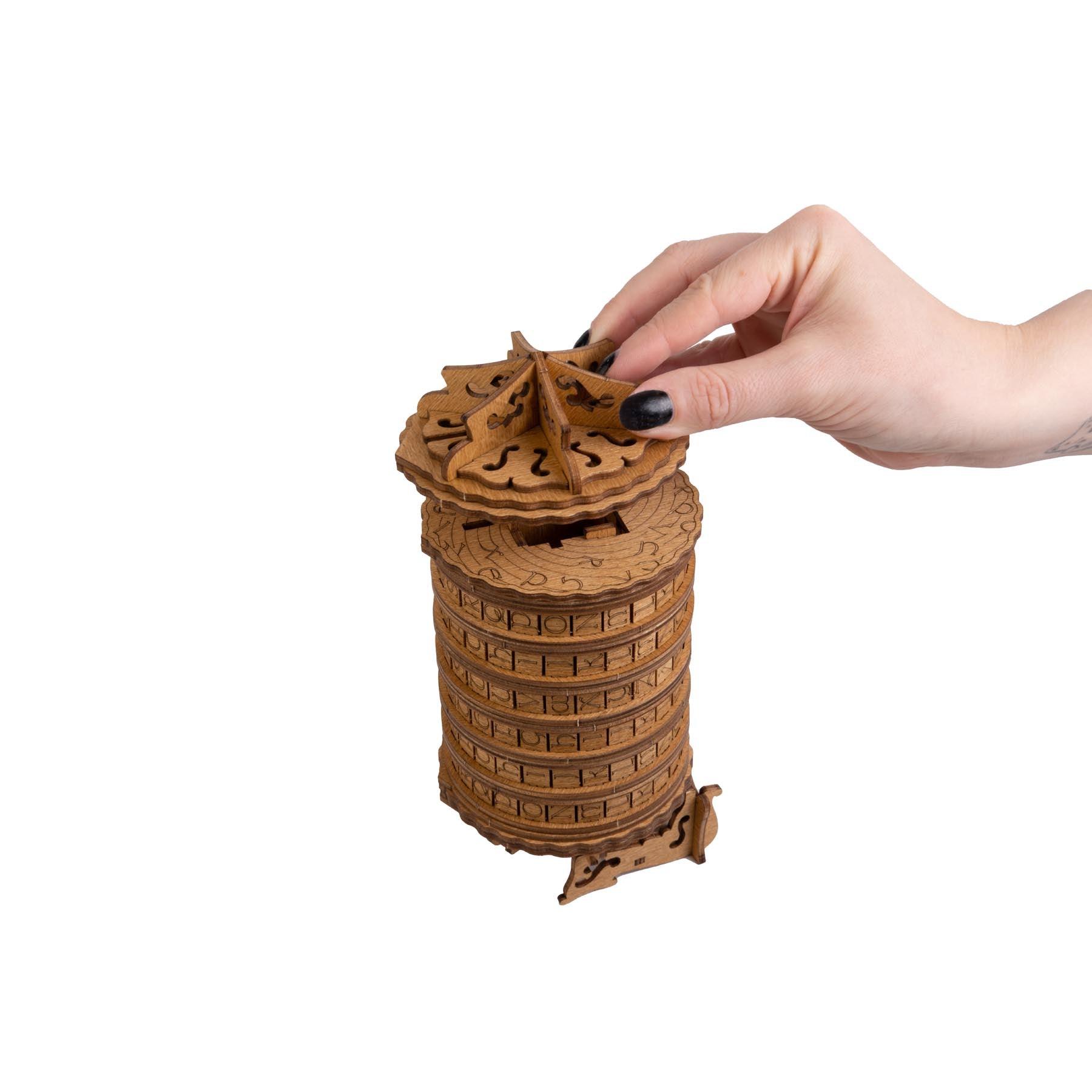 Stelle deinen persönlichen Code ein, lege dein Geschenk in die Kryptex und verschliesse sie. Schreibe deinen Freunden einen Hinweis oder ein Rätsel, mit dem der Code gefunden werden kann.
