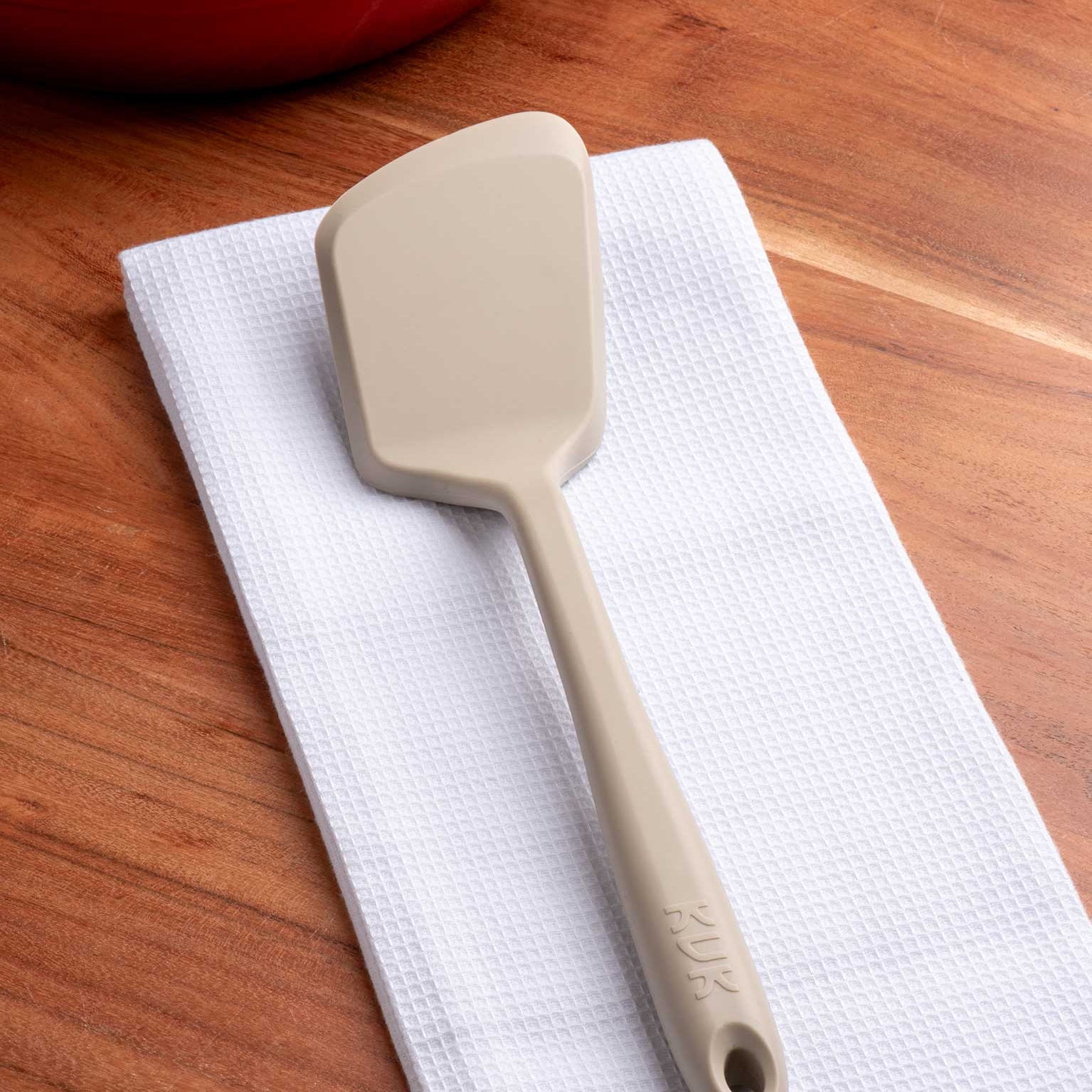 Der Kopf aus hochwertigem Platinsilikon ist gleichzeitig stabil und flexibel. So kannst du Speisen problemlos anheben, drehen und servieren – ohne sie zu zerdrücken. Gleichzeitig schützt das Material deine beschichteten Pfannen zuverlässig vor Kratzern.