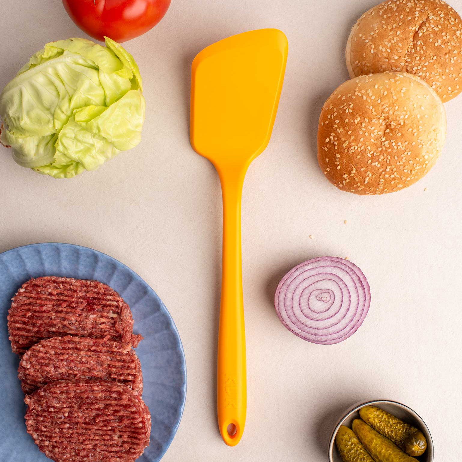 Der ergonomische Griff aus Edelstahl liegt angenehm in der Hand und sorgt für sicheren Halt – auch wenn es am Herd mal etwas hektischer wird. Perfekt für den Alltag in der Küche, den Brunch am Wochenende oder den Burger-Abend mit Freunden.