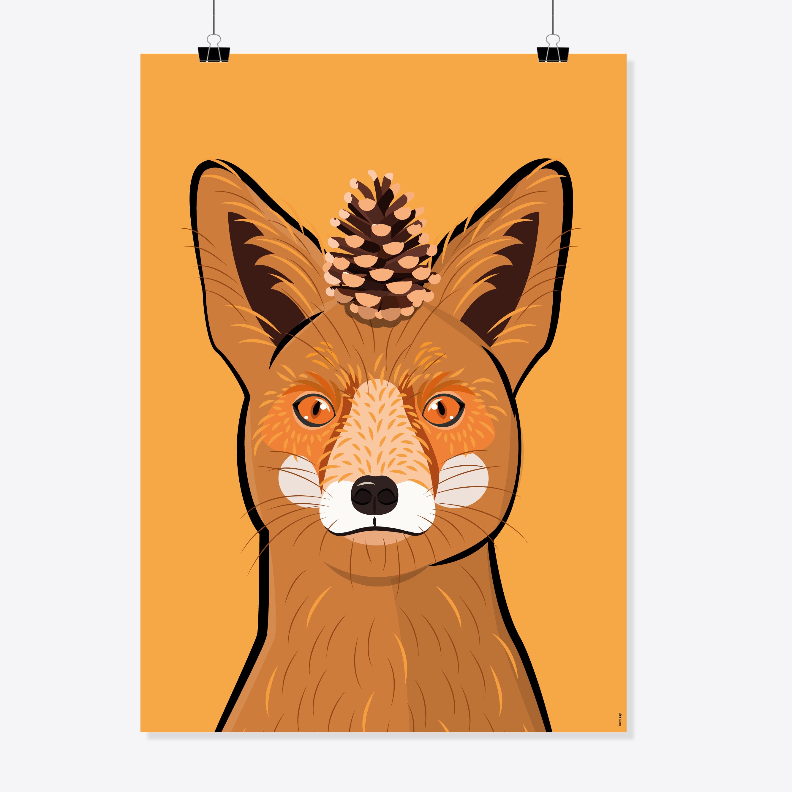 Hol dir den cleveren Charme in dein Zuhause – mit unserem Poster «Roy»! Illustriert von Reana Hostettler, zeigt es den aufgeweckten Fuchs Roy mit einem Tannzapfen auf dem Kopf. Mit seinem schelmischen Blick und seinem natürlichen Selbstbewusstsein bringt Roy eine Portion Waldmagie, Witz und Herbststimmung in jeden Raum.