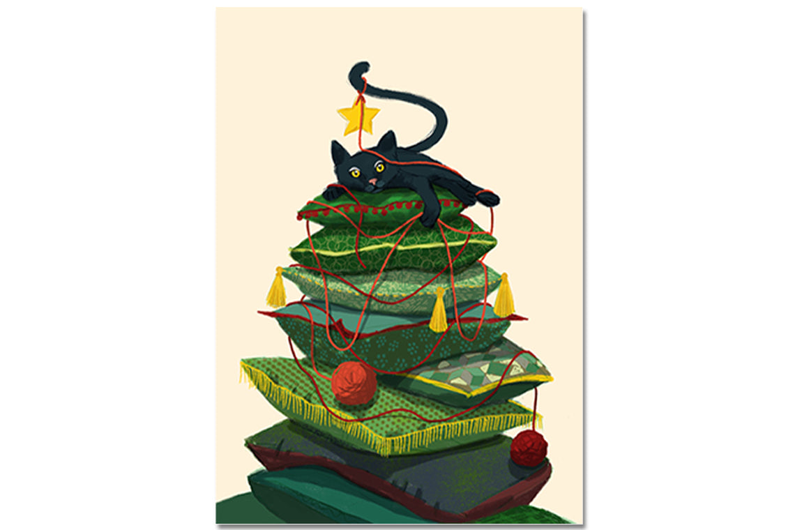„Katzenbaum“ ist die etwas andere Weihnachtskarte für Katzenliebhaberinnen und Katzenliebhaber. Das fröhliche Sujet spielt humorvoll damit, dass unsere Samtpfoten immer wieder für eine Überraschung gut sind – besonders dann, wenn ein schön geschmückter Tannenbaum in Reichweite steht. Ein liebevoll illustriertes Motiv, das sofort für ein Schmunzeln sorgt und perfekt ist für festliche Grüsse mit einem kleinen Augenzwinkern. Die matte Vorderseite setzt die Illustration wunderschön in Szene, während die Rückseite angenehm beschreibbar bleibt.