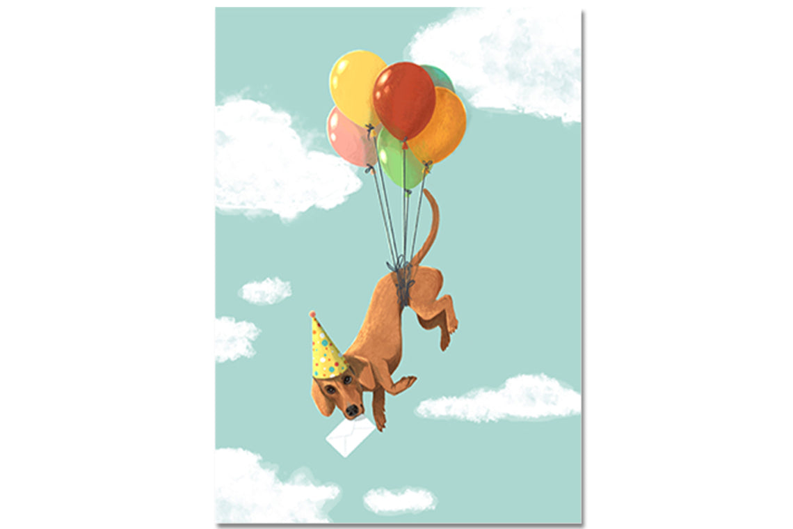 Manchmal braucht es nicht viele Worte – sondern die richtige Karte. Die Postkarte Luftpost mit dem Dackel welcher an Ballonen in der Luft schwebt überzeugt mit einer humorvollen Illustration, die sofort gute Laune macht. Ob zum Geburtstag, zur bestandenen Prüfung, als Dankeschön oder einfach nur so: Diese Karte passt immer.