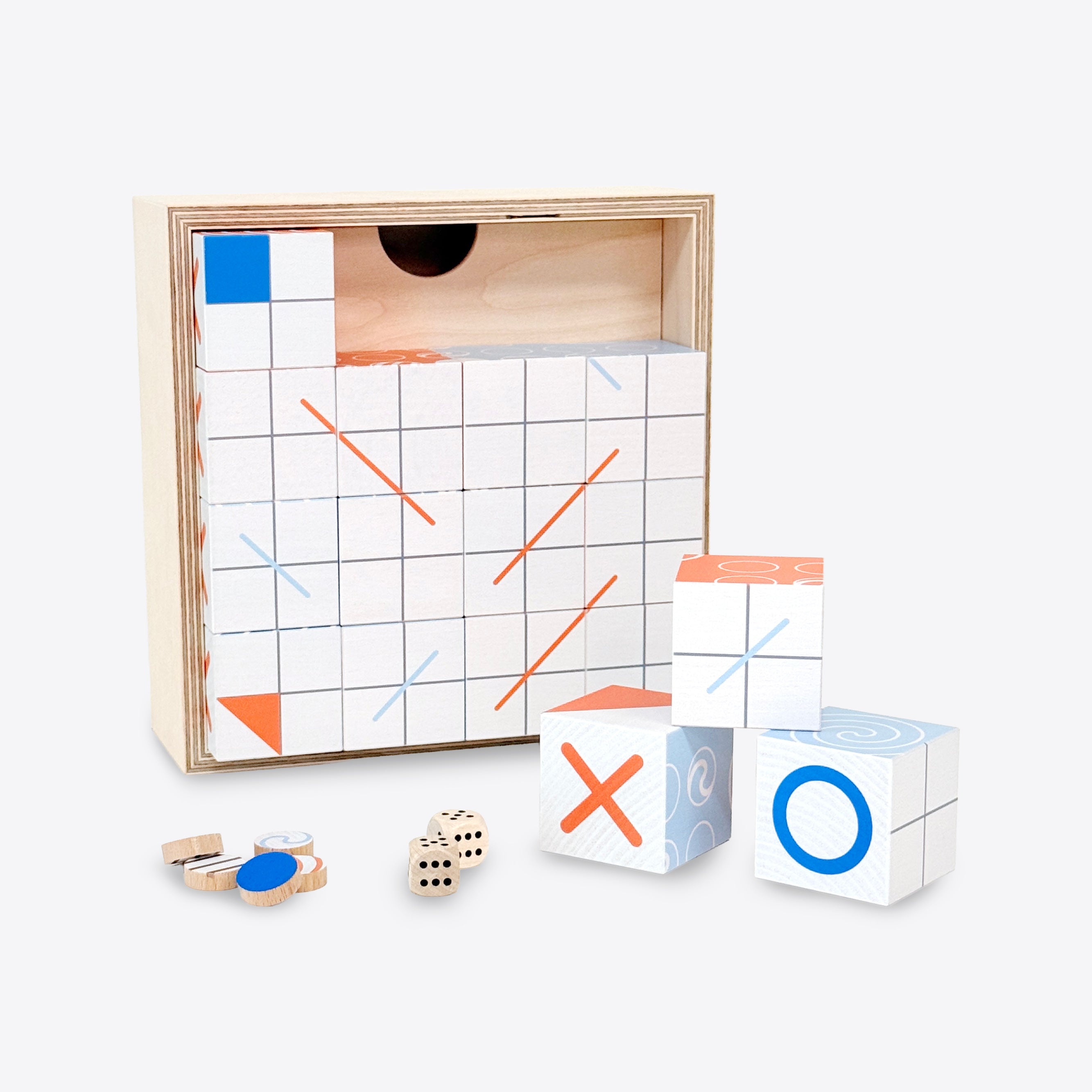 Mit dabei sind zeitlose Favoriten wie Mühlestein und Mosaik, dazu vier eigenentwickelte Spiele: das moderne Leiterlispiel Irrgarten, das elementare Keine Eile, unser Würfelabenteuer Cube Runner und das formstarke NaniXO. Viele Spielfelder lassen sich umdrehen oder neu anordnen – perfekt, um eigene Varianten auszuprobieren.