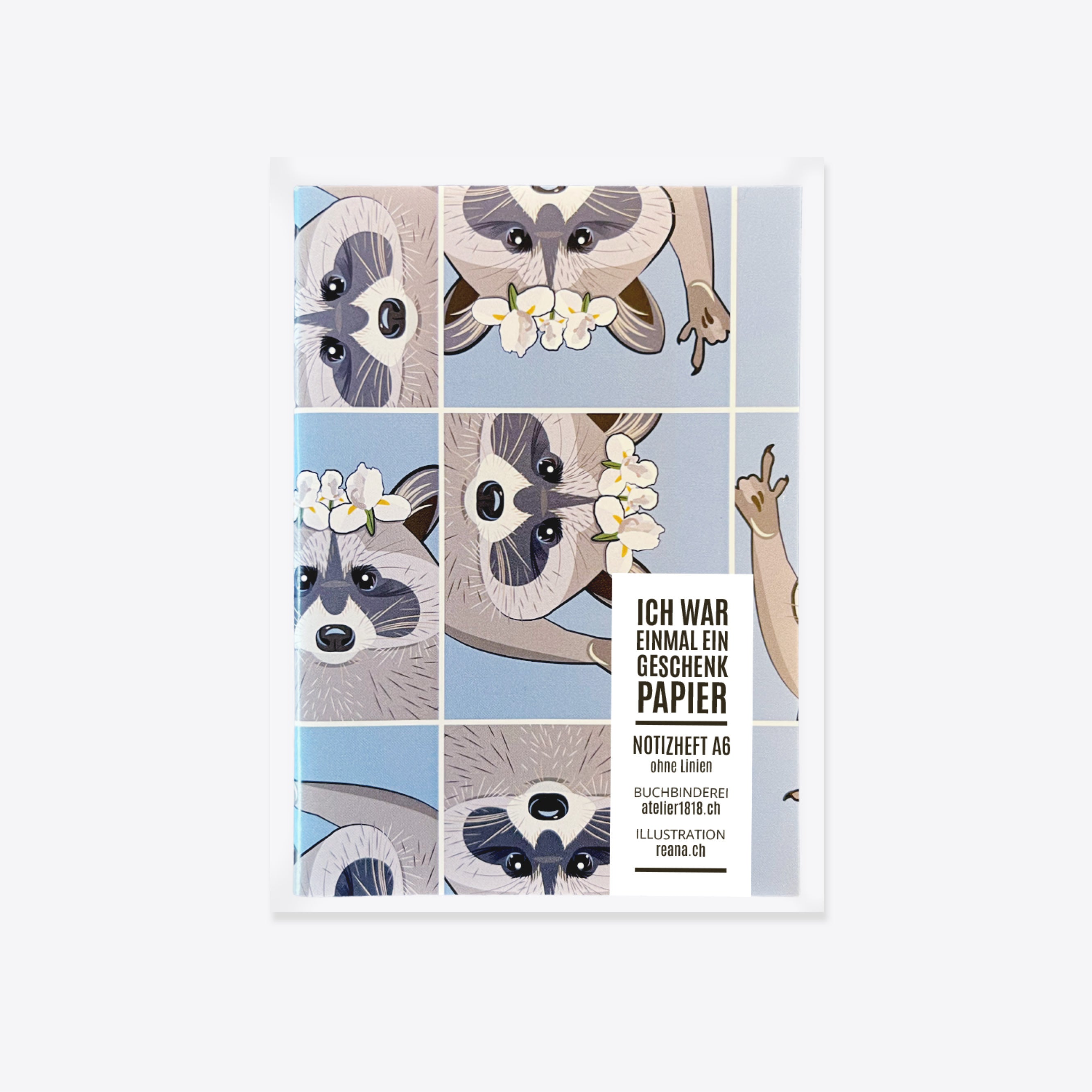 Das Notizheft „Pedro Blumentier“ trägt das unverwechselbare Motiv von Reana Hostettler aus der beliebten Blumentier-Kollektion. Pedro, der clevere Waschbär, trägt stolz Iris-Blüten auf dem Kopf – ein Symbol für Treue, Hoffnung und Weisheit – und formt mit seinen Pfoten das Zeichen für „Ich liebe dich“ in Gebärdensprache. Eine stille, aber starke Botschaft, die dieses Notizheft zu etwas ganz Besonderem macht.