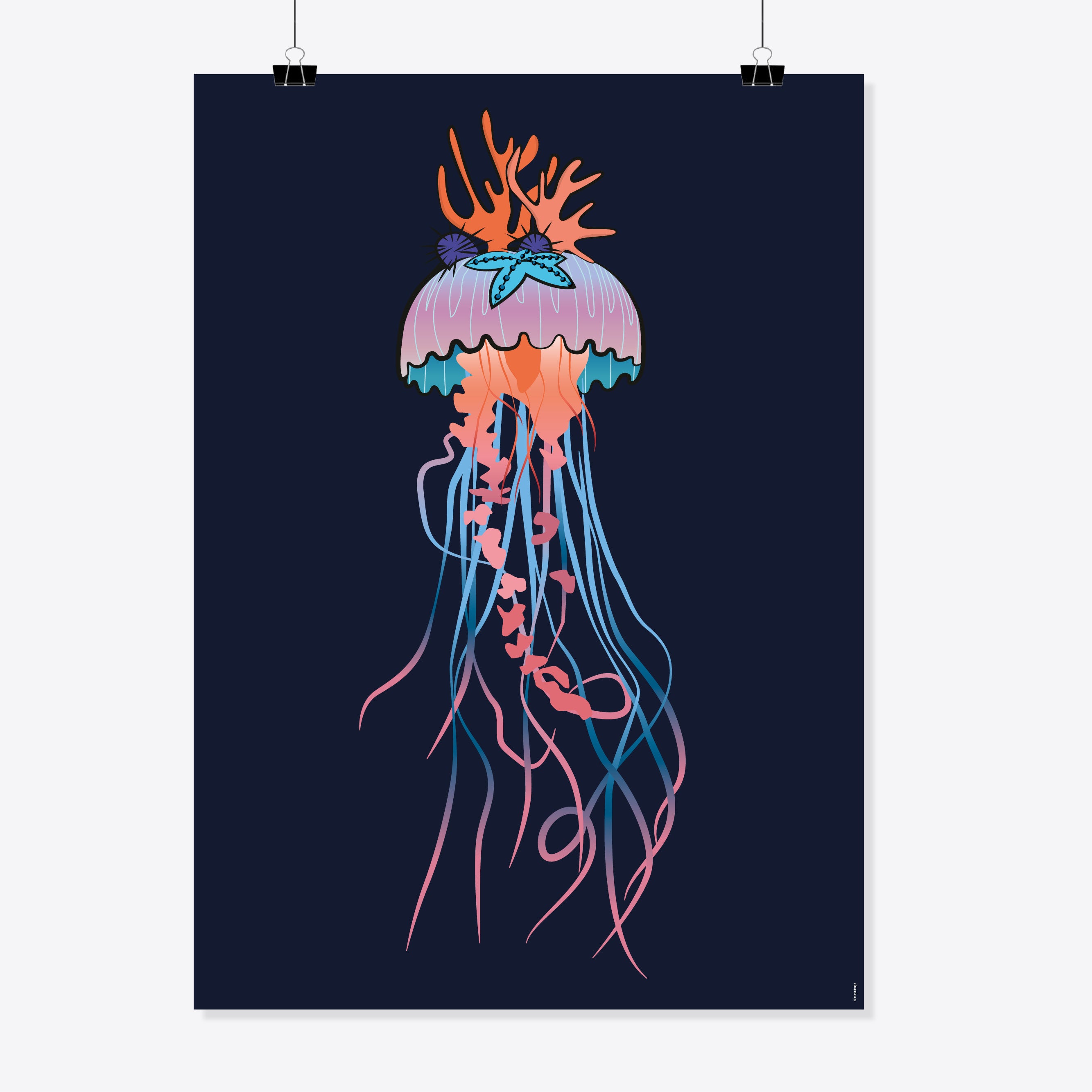 Hol dir einen Hauch Meeresmagie nach Hause – mit unserem Poster «Francesca»! Illustriert von Reana Hostettler, zeigt es die anmutige Qualle Francesca mit leuchtenden Korallen auf dem Kopf. Mit ihrer schwebenden Eleganz und ihrem sanften Leuchten bringt Francesca Ruhe, Tiefe und einen Hauch Unterwasser-Zauber in jeden Raum.